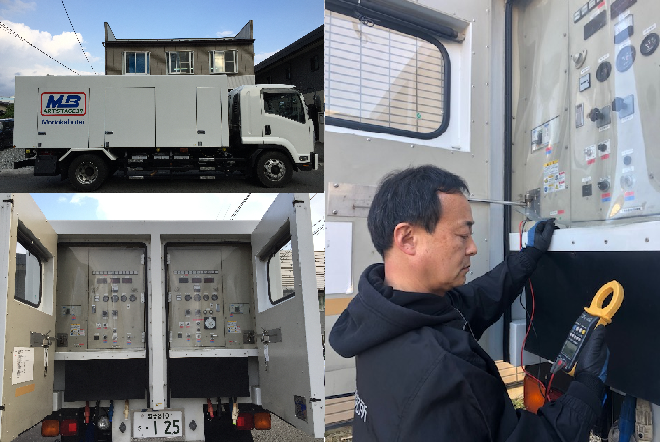 また、施設電源設備等の点検時のバックアップなどにも対応しております。お気軽にお問い合わせください。